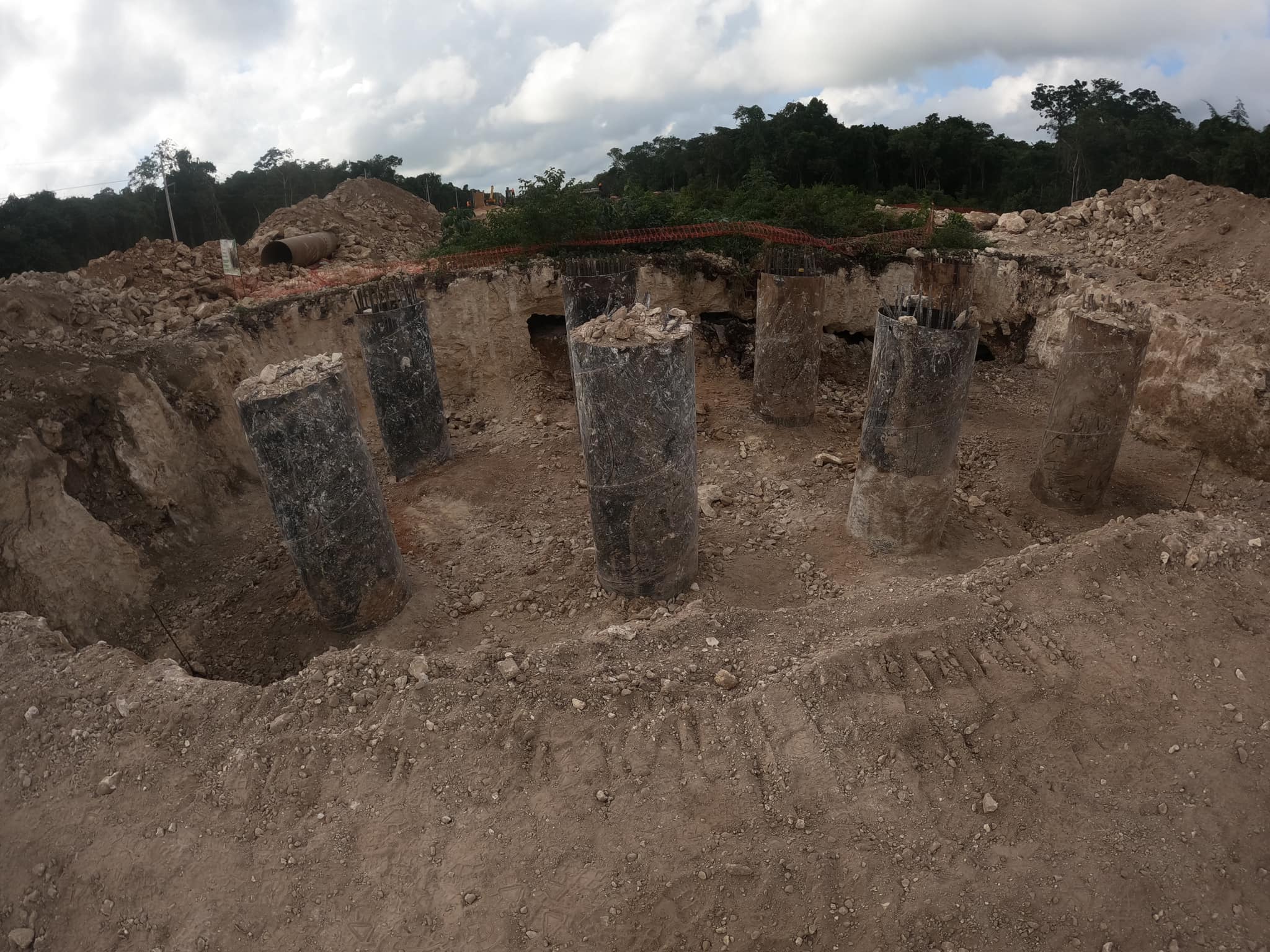 De acuerdo con las imágenes publicadas por DChristy la dolina está completamente destruida y en sus alrededores se muestran varias columnas que sostendrán las vías del Tren Maya.