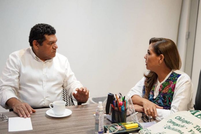 La gobernadora Mara Lezama Espinosa y el director general del Fondo Nacional de Turismo (FONATUR) Javier May Rodríguez se reunieron para revisar los avances en la construcción y los detalles para la promoción ante los empresarios españoles, así como tour operadores y profesionales de turismo que se reúnen en esta Feria.