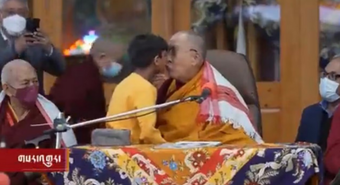 Una polémica se encendió tras la publicación de un video en el que aparece el dalái lama Tenzin Gyatso besando a un niño en la boca durante un oficio religioso.