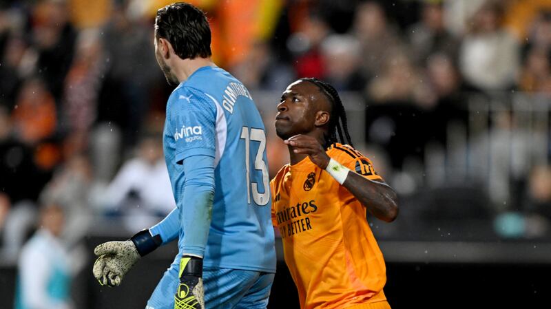 Los dirigidos por Carlo Ancelotti remontaron aquel partido, para mantenerse a la caza del Atlético de Madrid en la cima del campeonato español, pero Vinícius se fue expulsado tras propinarle un golpe al arquero rival.