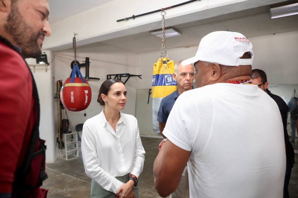 Como parte del recorrido, la Presidenta Municipal constató las instalaciones de las escuelas al interior del gimnasio “Kuchil Baxal”, que imparten disciplinas tales como de gimnasia, mul do, boxeo olímpico y la dos canchas de duela para usos múltiples, en las cuales entrenan, practican y compiten miles de atletas diariamente.