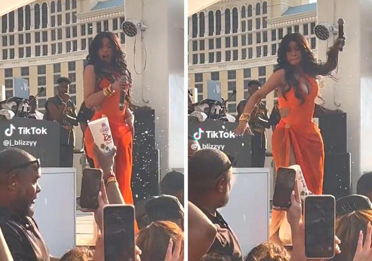 Cardi B lanza el micrófono a un miembro del público que le tiró una bebida