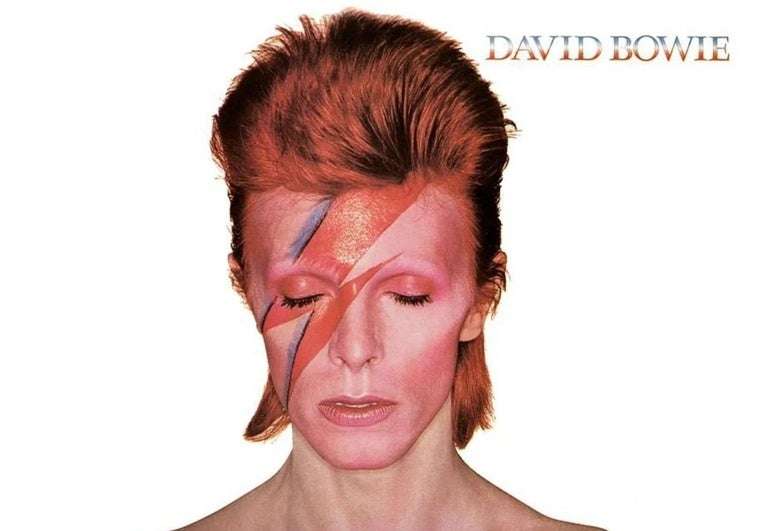 La de ‘Aladdin Sane’ de David Bowie es una de las portadas más icónicas de la historia de la música, y también de las más sencillas: un torso, un rostro y un relámpago rojiazul atravesándolo. Es tan icónica que en un festival de rock puedes encontrarte el rayito de marras en todas partes, camisetas, gorras y tatuajes, muchos tatuajes. Sólo el que separa las letras AC y DC puede rivalizar con él en popularidad.