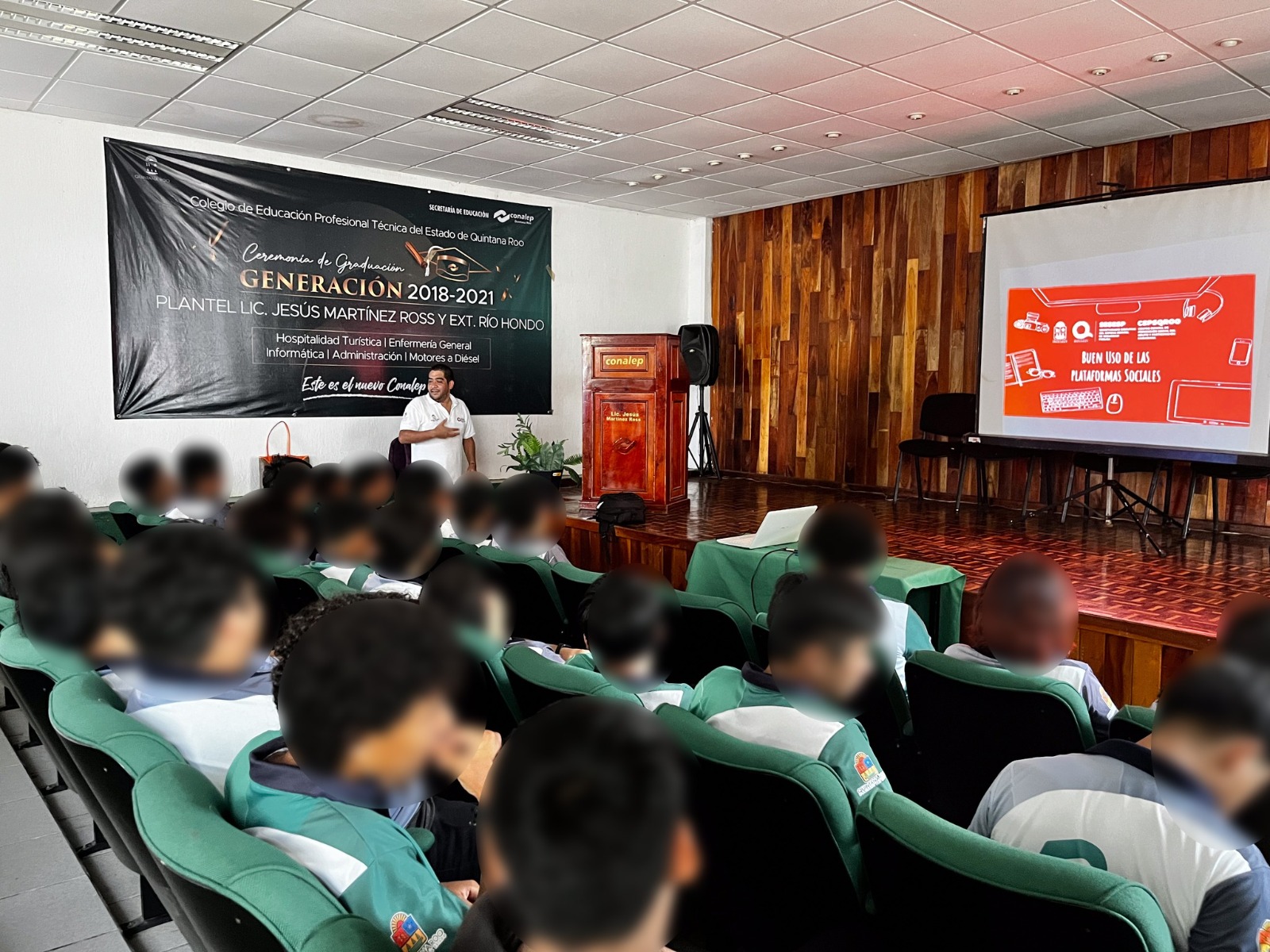 Personal del SESESP a través del Centro Estatal de Prevención Social del Delito y Participación Ciudadana (CEPSQROO), visitaron a los alumnos del CONALEP Chetumal, donde les impartieron los temas “Prevención de la violencia en el noviazgo” y «El buen uso de las Redes Sociales».