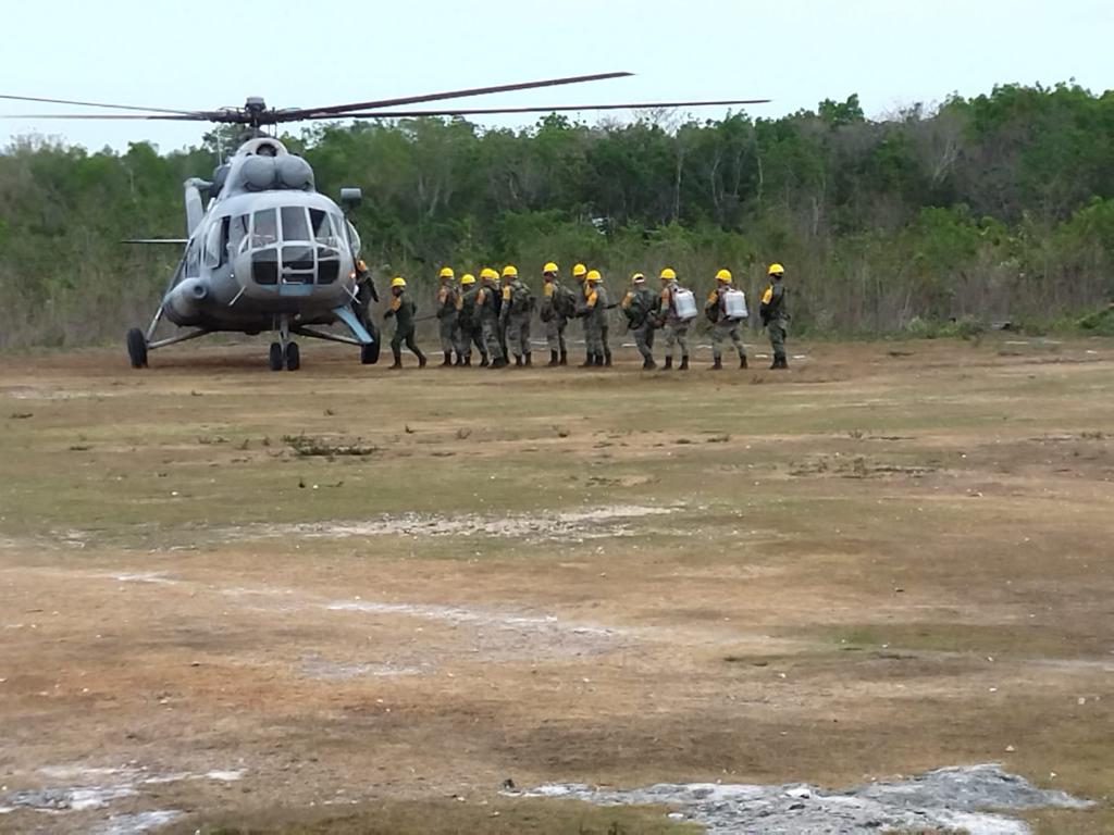 Se iniciaron operaciones desde las 08:00 horas con el helicóptero tipo MI-17, matricula 1717 de la SEDENA, trasladando al personal combatiente; asimismo, se realizaron 17 descargas de agua en las zonas de mayor actividad.