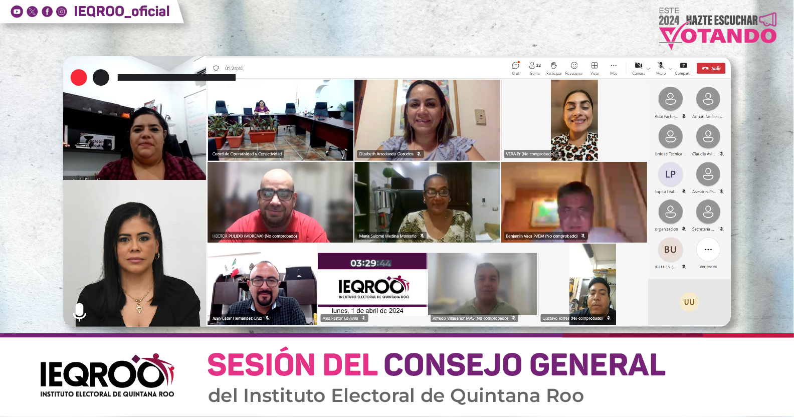 Integrantes del Consejo General del Instituto Electoral de Quintana Roo (IEQROO), en sesión extraordinaria aprobaron por mayoría otorgar un plazo de 48 horas contadas a partir de la notificación del presente documento jurídico, a las coaliciones denominadas “Fuerza y corazón por Quintana Roo” conformada por los partidos políticos PAN y PRI y “Sigamos haciendo historia en Quintana Roo”, integrada por los partidos políticos Morena, PT y PVEM; a los partidos PRD; PT; MC; MAS; PVEM; y a la Candidatura Independiente del Municipio de Othón P. Blanco, para que realicen los ajustes necesarios a efecto de dar cumplimiento con acciones afirmativas en el contexto del Proceso Electoral Local 2024.