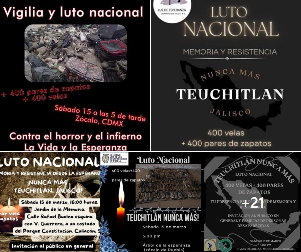 En redes sociales, Huellas de la Memoria expuso que conforme pasan los días, la iniciativa de Vigilia y Luto Nacional “crece y se fortalece por todo el país”, pues ya suman más de una veintena de ciudades en donde se realizará la actividad el próximo sábado.
