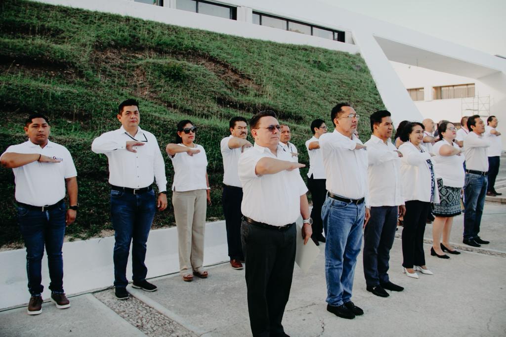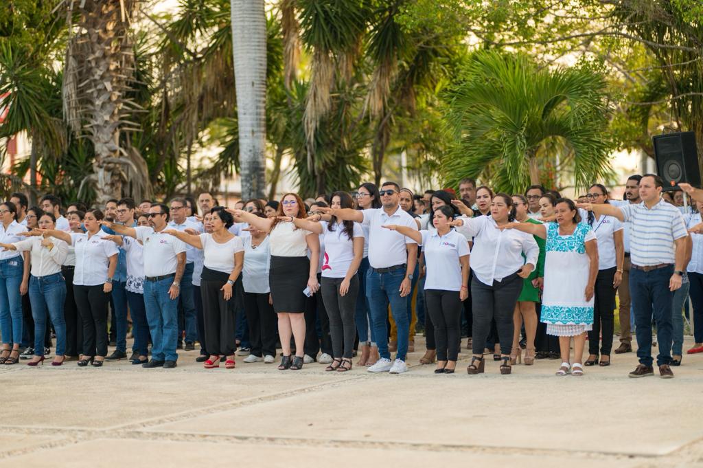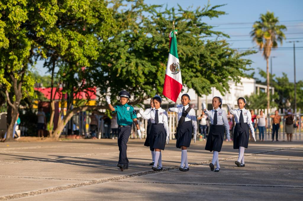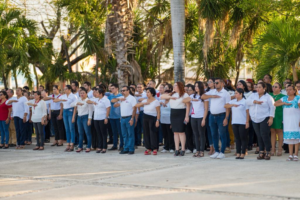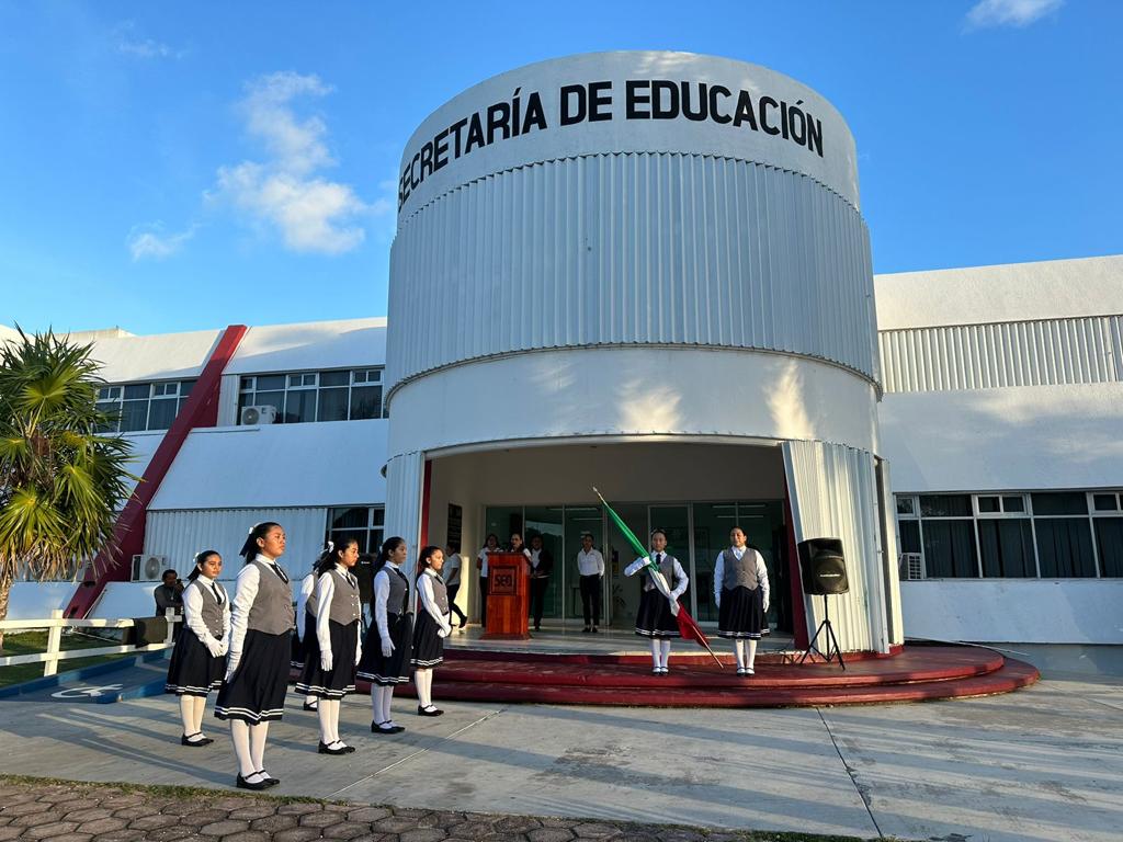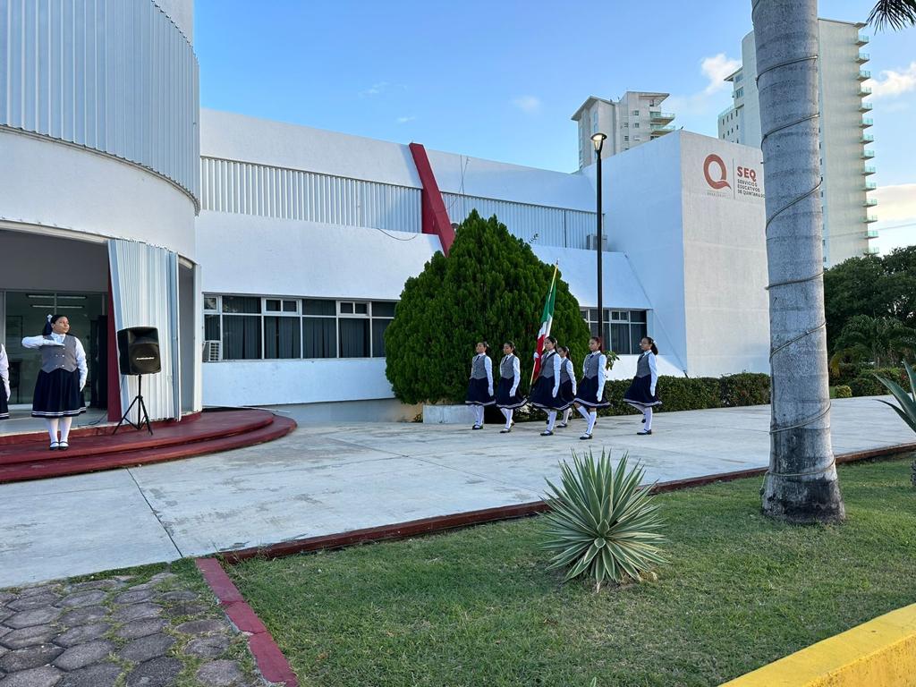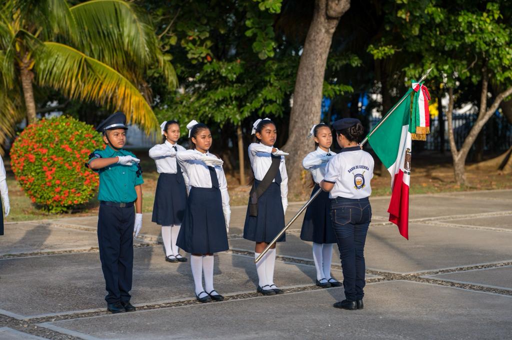 Con el propósito de fortalecer nuestra cultura de respeto hacia los símbolos patrios que nos identifican como mexicanos, se llevaron a cabo homenajes cívicos simultáneos en las ciudades de Chetumal y Cancún, correspondientes al mes de enero, destacando la participación de la escolta y banda de guerra de la escuela primaria “José María Robertos Meneses” y de la escolta de la secundaria general número 6 “Belisario Domínguez”, respectivamente. Además, se enfatizó que en este nuevo año, se refrenda el compromiso del sector educativo en beneficio de la educación de nuestras niñas, niños, jóvenes y adolescentes de nuestro Estado.