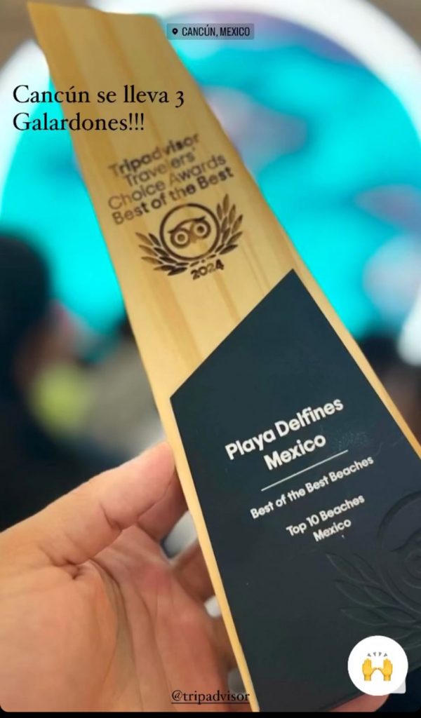 En el marco de la edición número 48 del Tianguis Turístico en Acapulco 2024, el Secretario Municipal de Turismo de Benito Juárez, en representación del Primer Regidor y Encargado del Despacho de la Presidencia Municipal, recibió tres galardones de los 12 que entregó Tripadvisor como mejor destino de México, Best of the Best, el primer lugar a nivel nacional; así como la número uno como mejor playa de México, Playa Delfines y Top Destination a Nivel Mundial, donde Cancún, ocupó el 7° lugar Internacional.