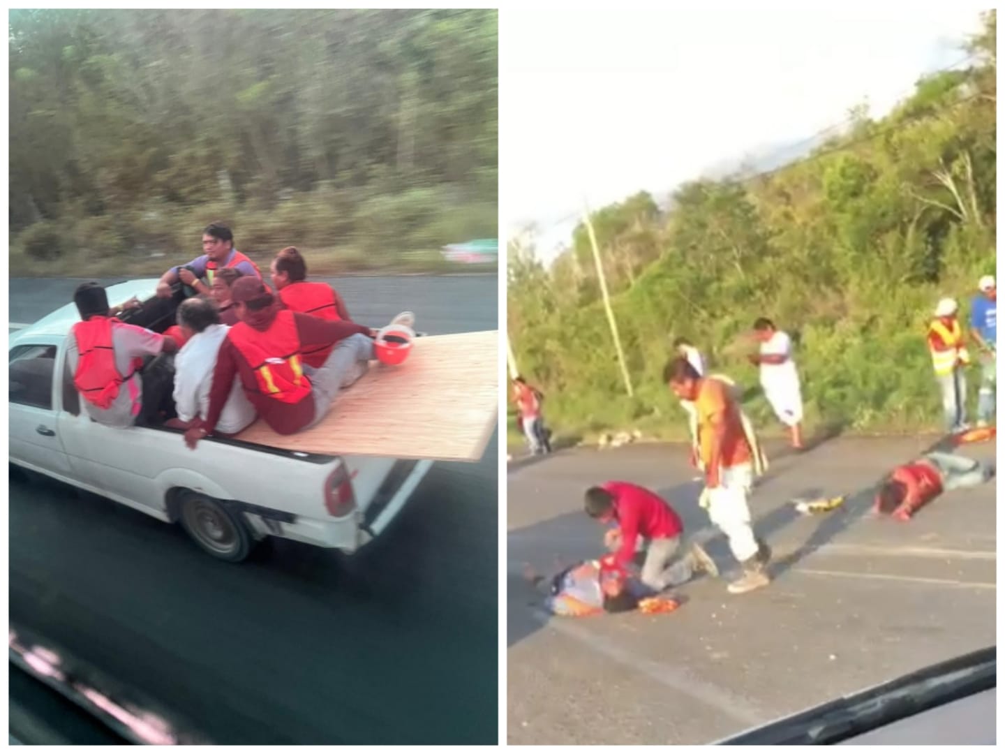 Puerto Aventuras.— Una camioneta que transportaba a trabajadores en la batea volcó sobre la carretera 307, dejando al menos a cuatro personas heridas y una sin vida.