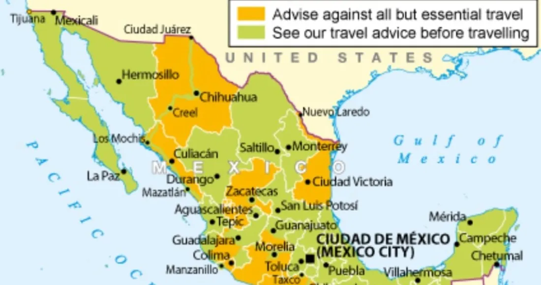La Oficina de Relaciones Exteriores, Commonwealth y Desarrollo (FCDO, por sus siglas en inglés), del Gobierno del Reino Unido, emitió, el 22 de junio de 2023, una alerta de viaje para México, por la violencia que se registraba en 10 entidades de la República Mexicana, consideradas como peligrosas, por la presencia del crimen organizado.
