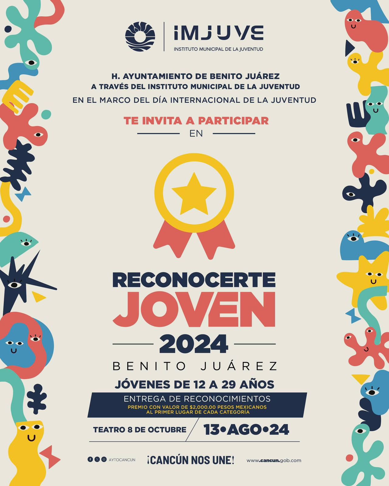 Cancún, Q. Roo.- El gobierno de Benito Juárez, a través del Instituto Municipal de la Juventud (IMJUVE), amplió el cierre de la convocatoria del Premio al Mérito Juvenil “Reconocerte Joven” hasta el martes 13 de agosto, esto para que más cancunenses de entre 12 a 29 años puedan sumarse.