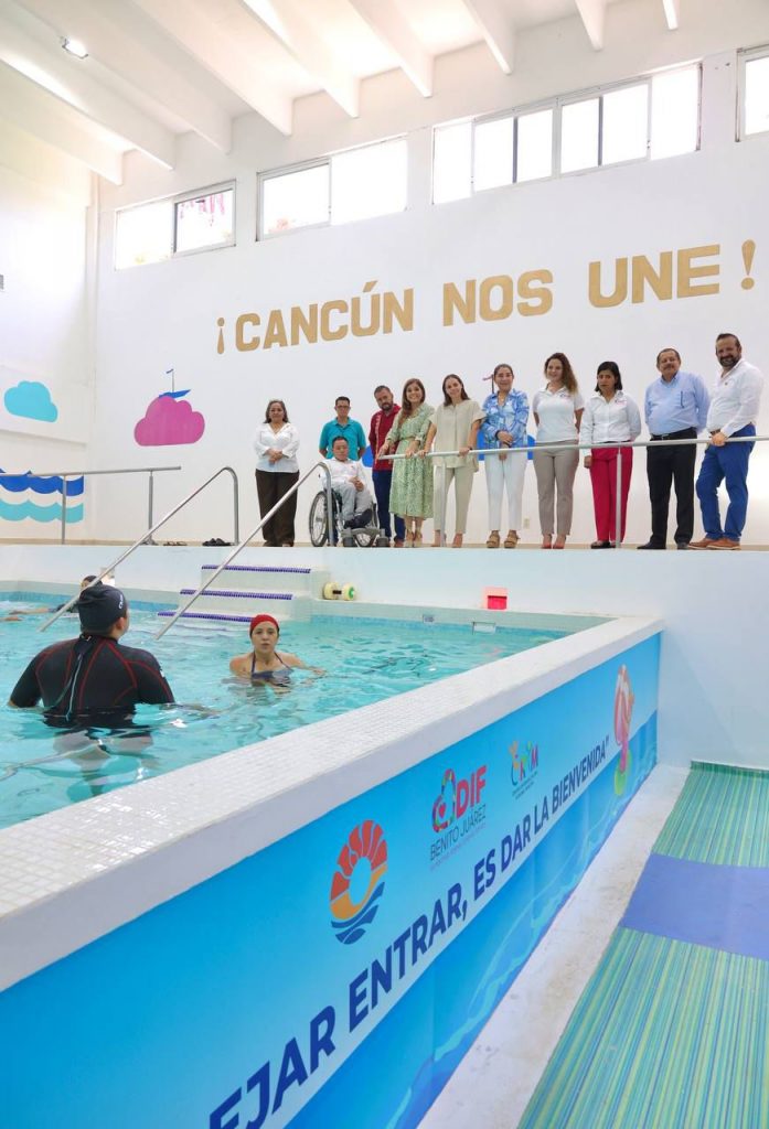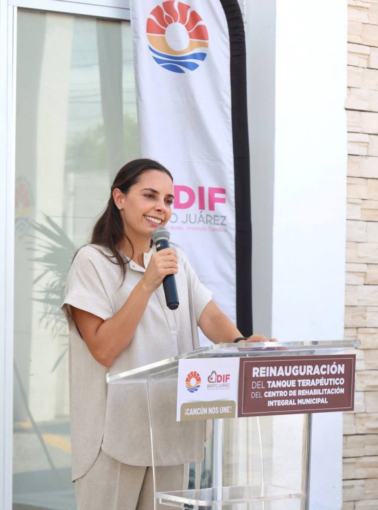 Cancún Q. Roo.- En un paso más por la construcción de un Cancún más inclusivo e igualitario, la Presidenta Municipal, Ana Paty Peralta, reinauguró junto a la presidenta honoraria del DIF Quintana Roo, Verónica Lezama Espinosa, el tanque terapéutico, con el que ya se podrá dar nuevamente el servicio de hidroterapia en el Centro de Rehabilitación Integral Municipal (CRIM), ubicado en la Supermanzana 67.