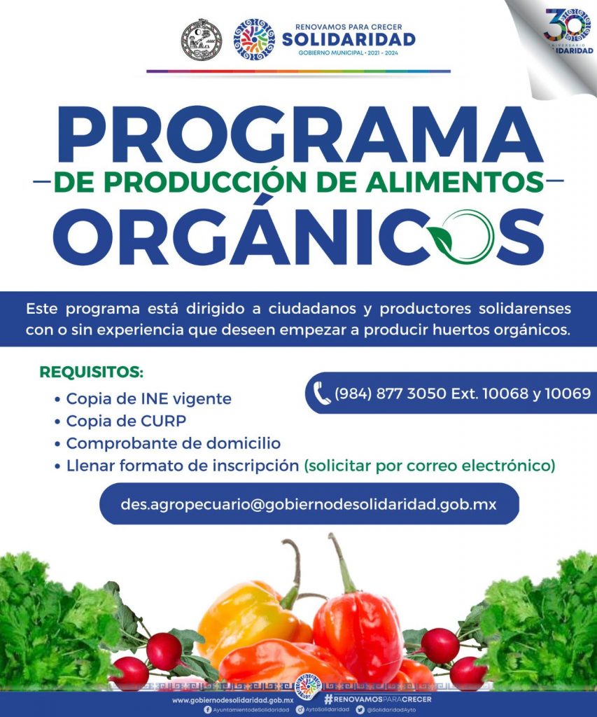 Playa del Carmen, Solidaridad.- Con el objetivo de contribuir a una sana alimentación y mejorar la economía familiar, el gobierno que preside Lili Campos, a través de la dirección de Desarrollo Agropecuario y Pesquero, invita a ciudadanos y productores solidaridenses a participar en el programa de producción de alimentos orgánicos.