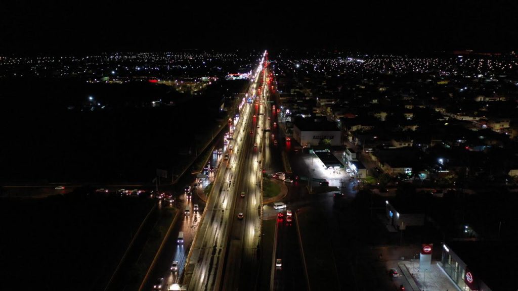 Playa del Carmen, Solidaridad.- El gobierno de Lili Campos renovó la iluminación sobre el puente a desnivel e instaló la luminaria número 5 mil, con sistema para bajar y subir la intensidad por las noches de acuerdo al aforo vehicular.
