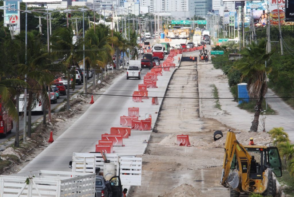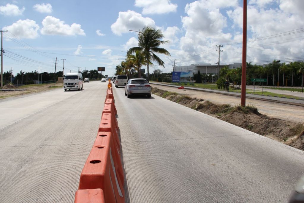También, se realiza la obra del nuevo entronque al aeropuerto de Cancún con una inversión de 350 millones de pesos y más de 20 por ciento de avance, que contará con doble capacidad del tráfico ya existente para la llegada y salida de miles de viajeros.