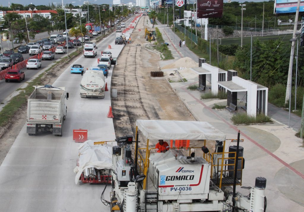 Otra de las obras emblemáticas, con más de mil millones de pesos en su inversión, es la pavimentación con concreto hidráulico del boulevard Luis Donaldo Colosio que comprende 13.5 kilómetros de vía, con más del 25 por ciento de avance, previendo que concluya este año, gracias a las gestiones del Gobierno del Estado y apoyo del Gobierno de México para garantizar la seguridad vial, mejorar la imagen y movilidad en el principal acceso a Cancún.