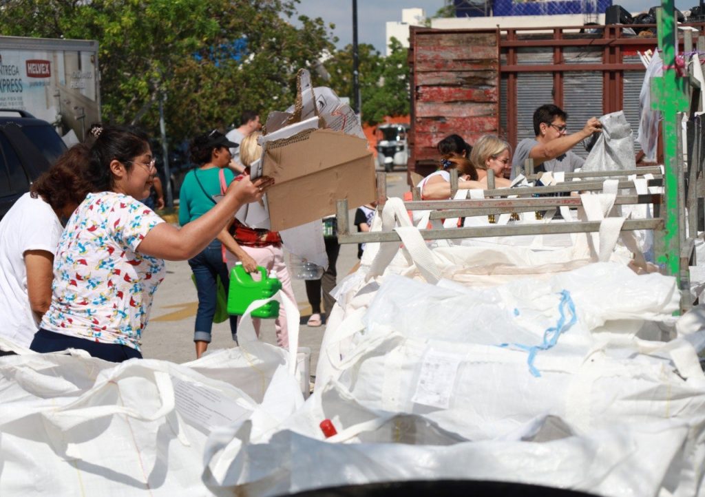 Este sábado, decenas de ciudadanos cancunenses acudieron a los siete centros de acopio ubicados en diferentes puntos estratégicos de la ciudad, para depositar sus diferentes materiales reciclables en cada uno de los contenedores correspondientes, como parte de la cultura de la reducción de generación de basura, separación de residuos y reciclaje de materiales.