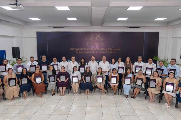 En el marco del 51 aniversario de la instalación del Tribunal Superior de Justicia del Estado de Quintana Roo, se llevó a cabo la entrega de reconocimientos al personal con 10 años de servicio en el Poder Judicial, como muestra de gratitud por su compromisoprofesionalismo dedicación al fortalecimiento del sistema de justicia.