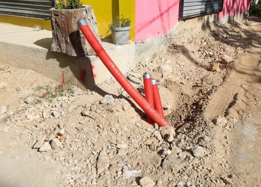 Durante el recorrido se informó que los trabajos de introducción de la tubería subterránea presentan un avance de 800 metros lineales, teniendo considerado colocar transformadores de pedestal, muretes en cada lote habitacional ocupado, dejando preparadas las tomas para predios baldíos y evitar que los trabajos causen deterioro de la vialidad o banquetas.