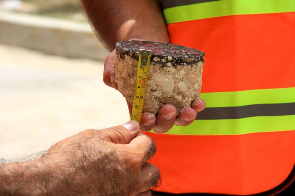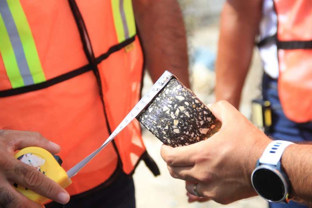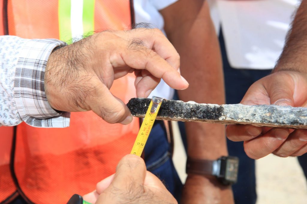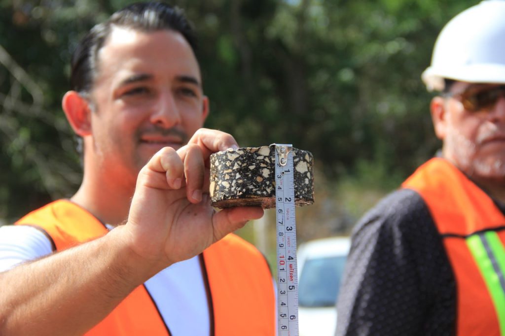 En resumen, durante estos recorridos, se realizaron al azar perforaciones con la extracción de núcleos de las anteriores y actuales pavimentaciones, con el fin de checar con el espesor de la carpeta de concreto asfaltico que en su momento se colocó y que actualmente se está reconstruyendo, las empresas cumplan con los siete centímetros de espesor en avenidas principales y cinco centímetros en las calles secundarias.