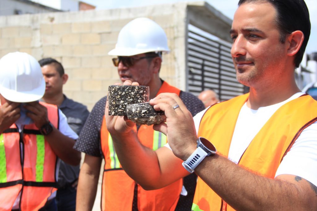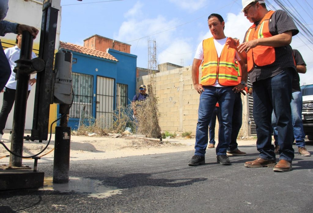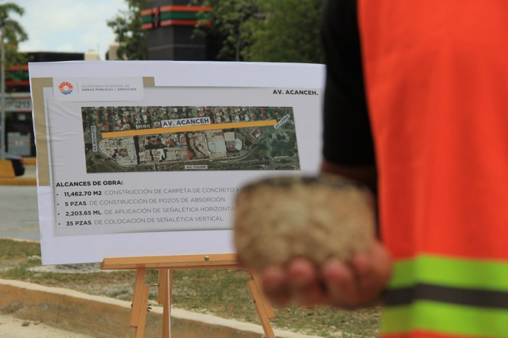 Por ello, realizó una supervisión minuciosa en Avenida Los Tules, entre Avenida Chac Mool y Avenida Kabah, de la Supermanzana 248, así como en un trazo más de los Tules entre Calle Paseo El Durazno y Calle 18, donde en ambas obras se construyen 25,063.83 metros cuadrados de carpeta de concreto asfáltico de 7 centímetros de espesor, así como 19 pozos de absorción, la colocación de 79 piezas de señalética vertical y 6,754.03 metros lineales de aplicación de señalética horizontal.