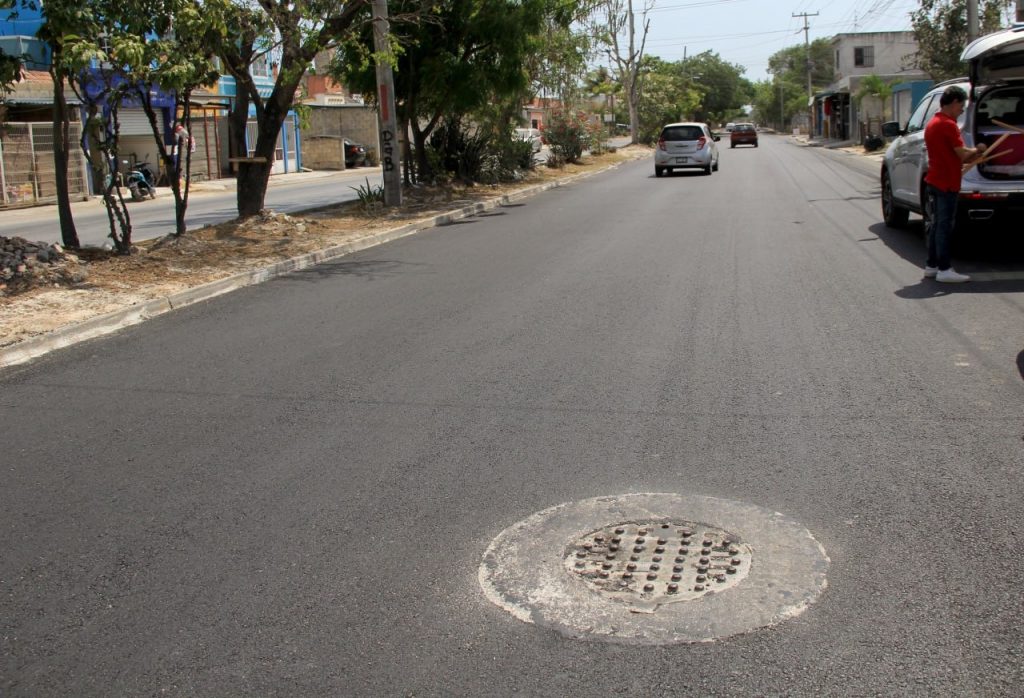 Por su parte, los trabajos que se realizan en Avenida Acanceh, son 11,462.70 metros cuadrados de pavimento de 7 centímetros de espesor; 5 piezas de construcción de pozos de absorción; 2,203.65 metros lineales de aplicación de señalética horizontal y 35 piezas de colocación de señalética vertical.