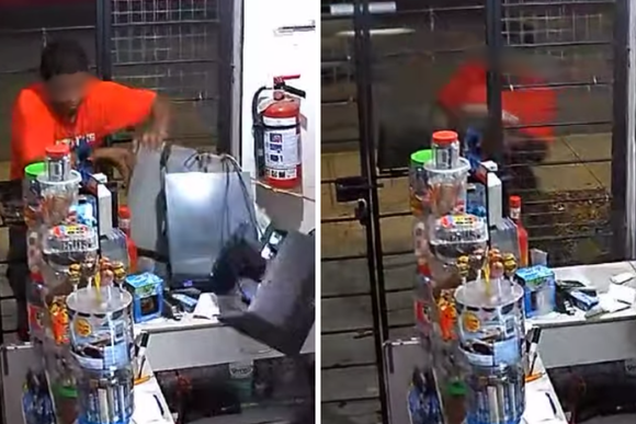 En las imágenes grabadas en una tienda ‘Six’, los dos sujetos se acercan a la ventanilla y solicitan un producto a la empleada. Mientras esta se voltea para buscar el artículo solicitado, uno de los hombres, quien vestía una playera naranja, se introduce parcialmente por la ventanilla y jala la caja registradora. Luego del robo, los individuos huyen rápidamente del lugar con el aparato electrónico.