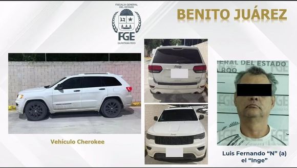 Como parte de la investigación, la Fiscalía aseguró en Colima una camioneta Cherokee utilizada para vigilar los movimientos de la víctima, la cual ya fue trasladada a Cancún como prueba clave.