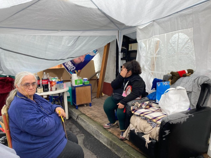 Frente al número 102 de la calle Mar Blanco, colonia Popotla, alcaldía Miguel Hidalgo, Gloria Dorador Martínez, de 68 años, permanece bajo una carpa con algunos muebles que le quedaron tras el desalojo del predio de una decena de viviendas donde ha vivido desde hace 47 años.