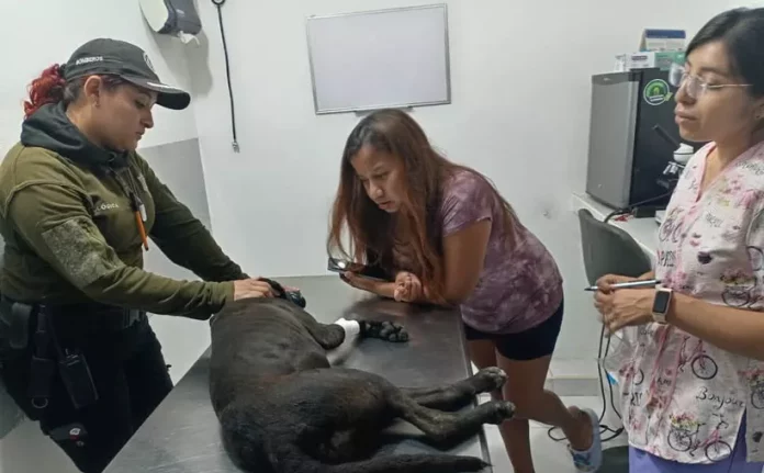 Según la rescatista Ale Noh Basto, quien llevó a la perrita al veterinario, «Negrita» tiene fractura de columna y entre el fémur y la cadera.