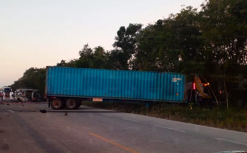 El pasado lunes se registró un fatídico accidente en la carretera federal 307 Carrillo-Chetumal, pasando el entronque de la comunidad de X-Hazil Sur, donde un tráiler impactó a una van de trans porte foráneo que ardió en llamas y como resultado fallecieron nueve personas y siete resultaron lesionadas.
