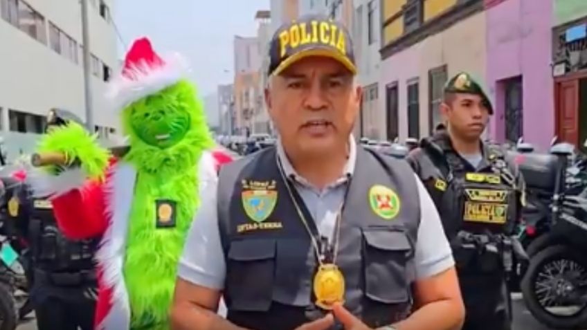 Un policía encubierto con disfrazas de Grinch participó en un operativo antidrogas en Lima, Perú, rompiendo una puerta con un mazo antes de arrestar a presuntos narcotraficantes e incautar varios kilos de droga antes de terminar posando junto a los detenidos para una fotografía que quedará en la posteridad.
