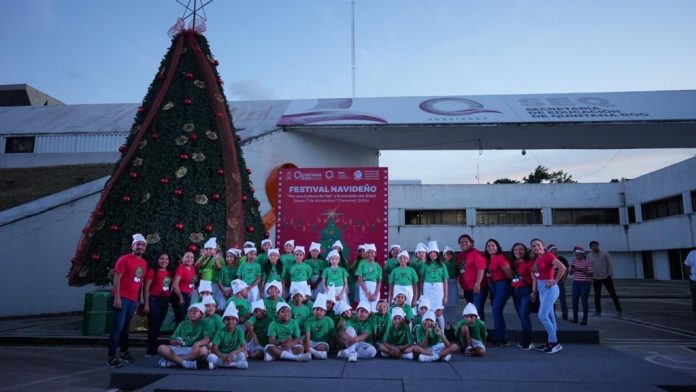 Chetumal.- Con el fin de fomentar y promover espacios de sana convivencia, dirigidos a todo el sector educativo, en el marco del Programa Estatal de Cultura de Paz, se llevó a cabo el “Festival Navideño Por una Cultura de Paz”, y Encendido del Árbol, en la plaza cívica de la Secretaría de Educación de Quintana Roo (SEQ).