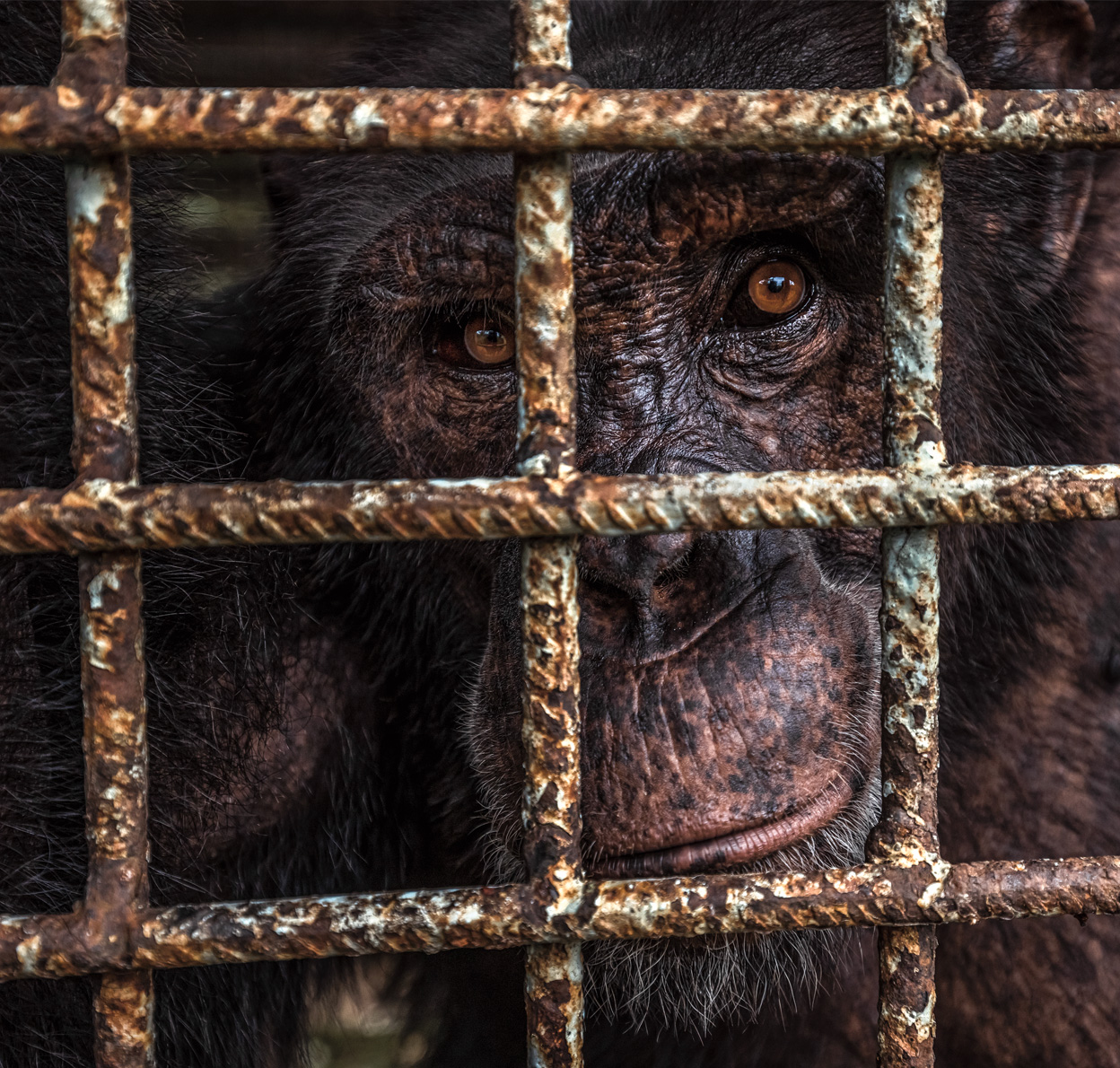 «Se estima que a principios del siglo XX en África había un millón de chimpancés. Ahora hay solo entre 150.000 y 350.000 en libertad», según el Instituto Jane Goodall. Estos animales ya han desaparecido de Togo, Benín, Burkina Faso y Gambia. En el Centro de Conservación de Chimpancés de Guinea, junto al río Níger, cuidan a 50 animales aproximadamente, crías y adultos.
