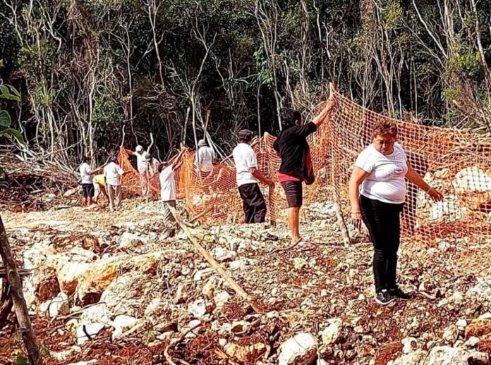 FELIPE CARRILLO PUERTO, MX.- Miembros del ejido de X´mabén y anexos de la comunidad de Señor, quienes forman parte del Comité de Defensa de las Tierras Ejidales de dicha localidad, bloquearon el paso un tramo en donde se llevan a cabo los trabajos del tramo 6 del Tren Maya, ante la negativa de autoridades del Fondo Nacional de Fomento al Turismo (Fonatur) de indemnizar sus tierras.