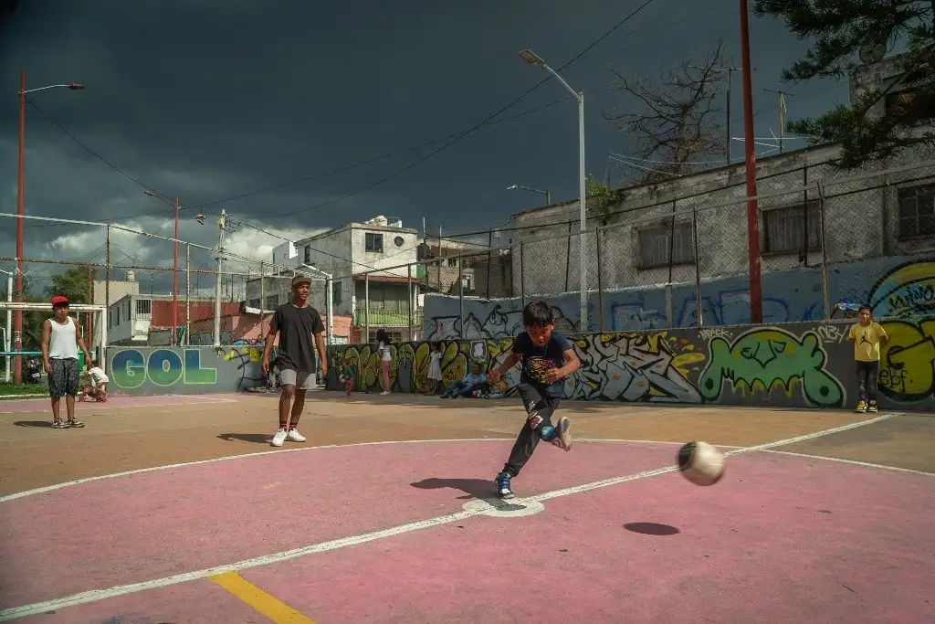 La Fundación Interculturalidad, Salud y Derechos (Insade) impulsa acciones en pro de las infancias en contexto de movilidad. Germán García, integrante de la asociación civil, realiza labores de entrenamiento deportivo, principalmente clases de futbol, al que se suman chicos del barrio y niñas y niños migrantes, que en su mayoría no superan los 12 años de edad.