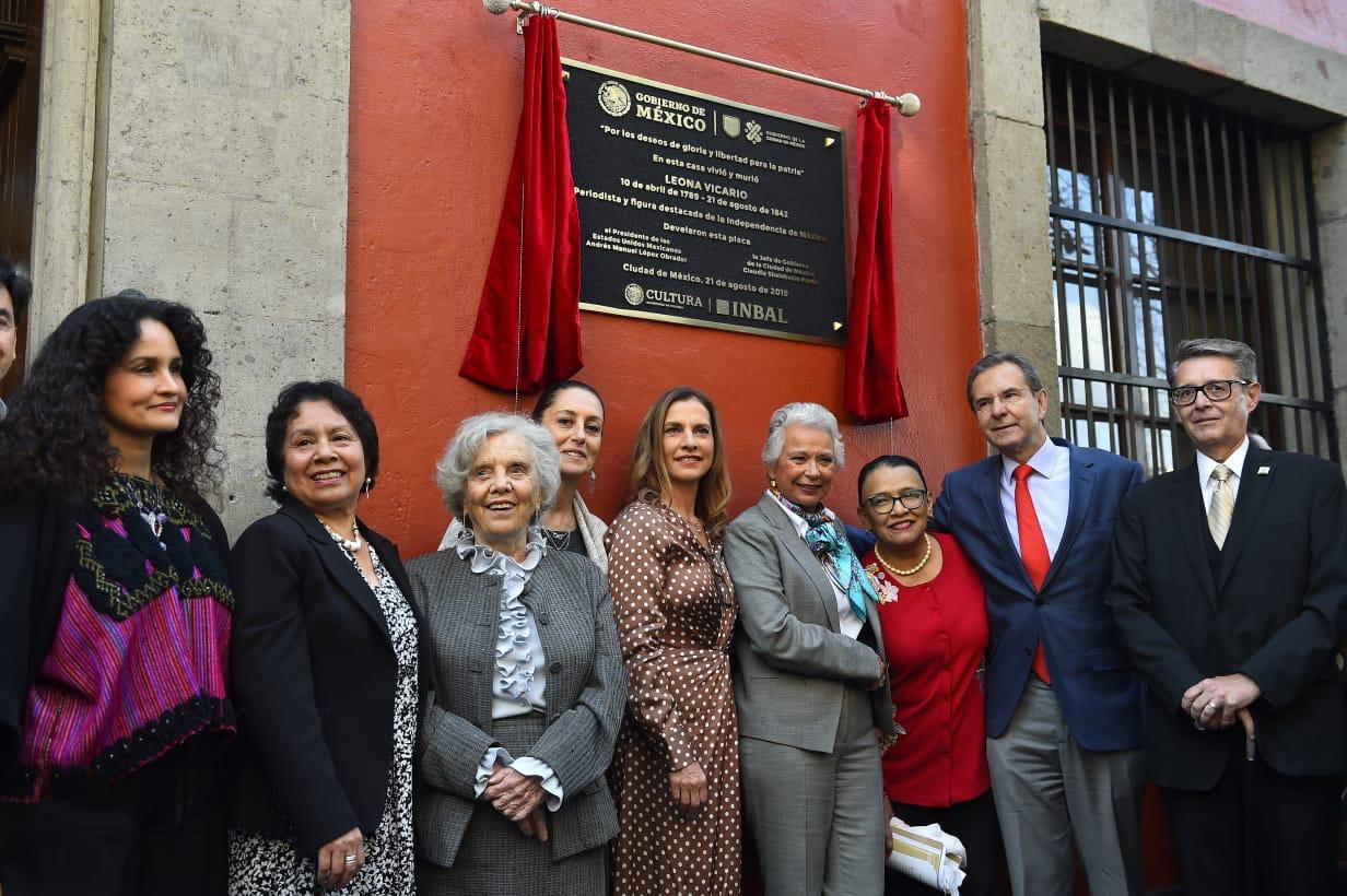 Al conmemorarse el 177 aniversario luctuoso de Leona Vicario, fue develada una placa en la que se reconoce la trascendencia de su contribución al movimiento de Independencia de México. Durante la ceremonia, presidida por la secretaria de Gobernación, Olga Sánchez Cordero, en representación del presidente de la República, Andrés Manuel López Obrador; la directora general del Instituto Nacional de Bellas Artes y Literatura, Dra. Lucina Jiménez, en representación de la secretaria de Cultura, Alejandra Frausto; la presidenta del Consejo Honorario de la Memoria Histórica y Cultural de México, Beatriz Gutiérrez Müller, y la jefa del Gobierno capitalino, Claudia Sheinbaum, la placa conmemorativa fue colocada en el número 37 de la calle República de Brasil, en el Centro Histórico de la Ciudad de México.