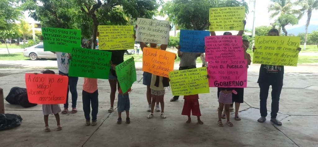 Los otros menores eran de vecinos que desaparecieron en la balacera cometida por más de 30 sicarios que irrumpieron en el poblado a bordo de tres camionetas, narraron mujeres a las autoridades. Sólo llevaban lo que traían puesto; la gente les ofreció agua, comida, cobijas y ropa. Los desplazados, con pancartas, pidieron ayuda urgente a los gobiernos del estado y al federal.