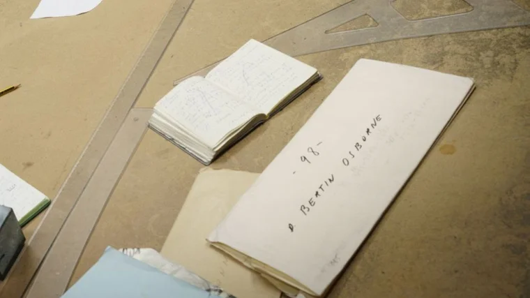 Mariano muestra algunos de los patrones que guardan en el taller José Manuel Ladra