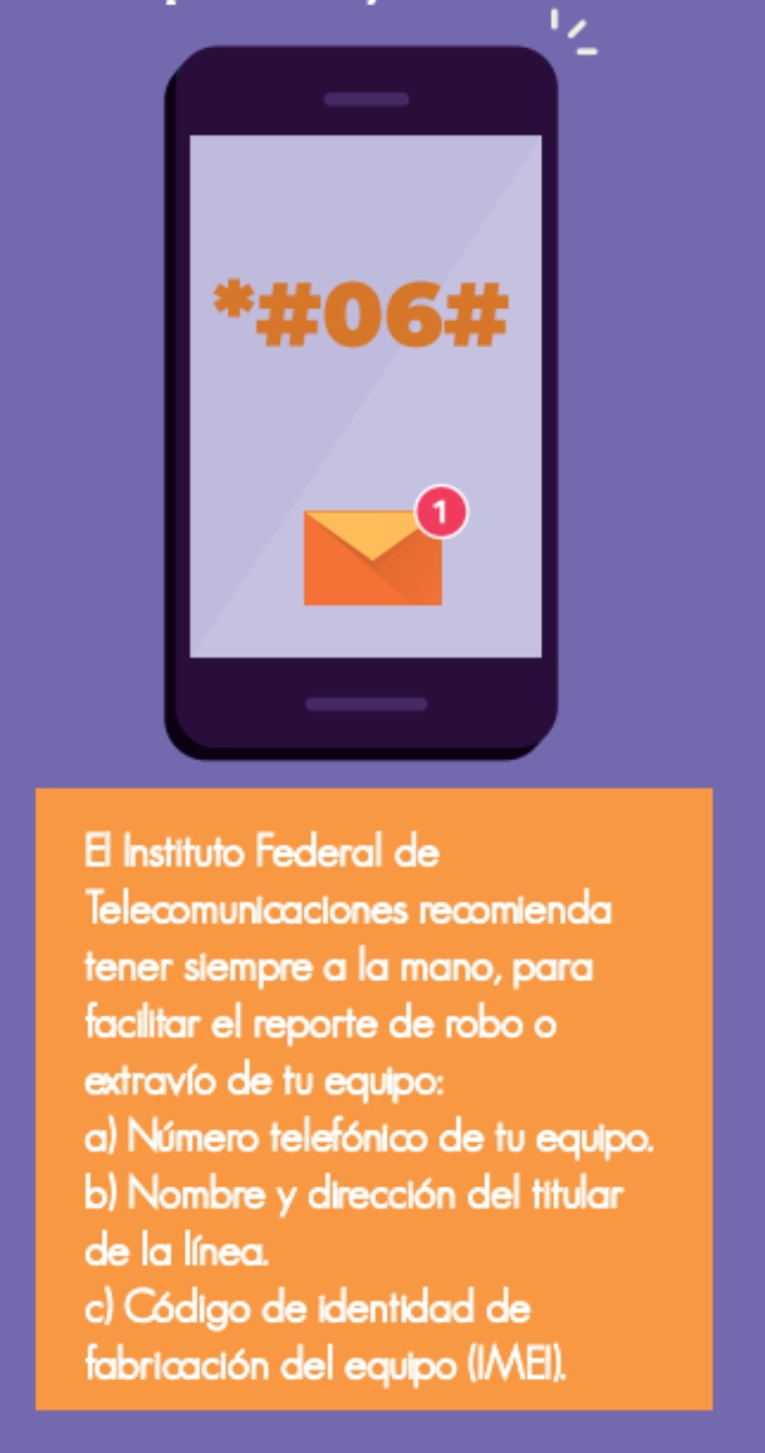 – Antes de adquirir un celular hay que asegurarse que no sea robado, para ello se puede consultar el estatus del dispositivo en el siguiente sitio: www.ift.org.mx/imei