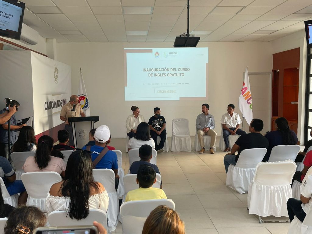 Cancún Q.R.- Con el objetivo de garantizar el derecho a la educación para niñas, niños y adolescentes de grupos y regiones con rezago educativo o que enfrentan situaciones de vulnerabilidad, el Sistema Municipal de Protección Integral de Niñas, Niños y Adolescentes (SIPINNA) en Benito Juárez, inauguró de manera oficial el curso de inglés gratuito en el salón Presidentes del Ayuntamiento.