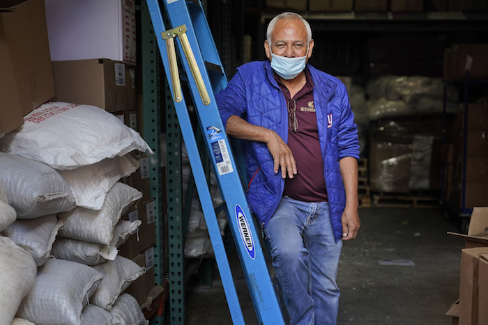 Nicolás Aguilar divide epazote en los almacenes de su negocio, Nicomex, en Passaic, Nueva Jersey, el jueves 8 de octubre del 2020. Aguilar es integrante de Fuerza Migrante, una plataforma binacional de mexicanos que arma proyectos productivos para que los mexicanos inviertan en su país natal y eviten así que sus compatriotas se vean forzados a emigrar a Estados Unidos. Foto: Seth Wenig, AP.