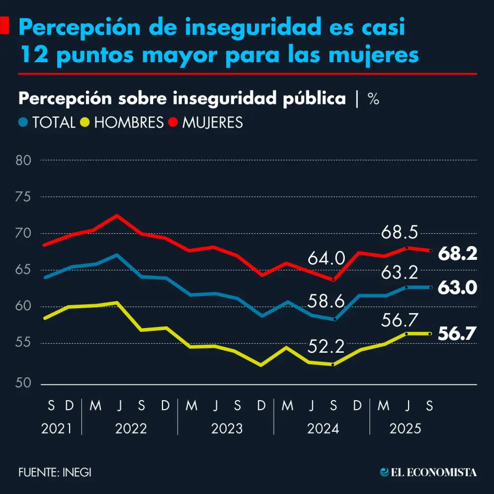 Al corte de septiembre del 2025 se observó que seis de cada 10 mexicanos adultos (63%) consideró que la localidad en la que reside es peligrosa en términos de inseguridad.